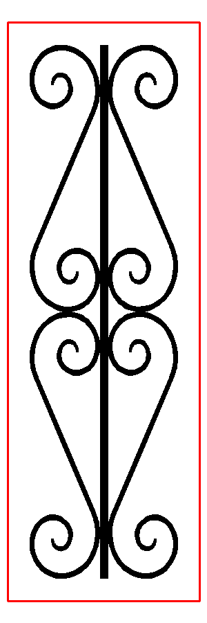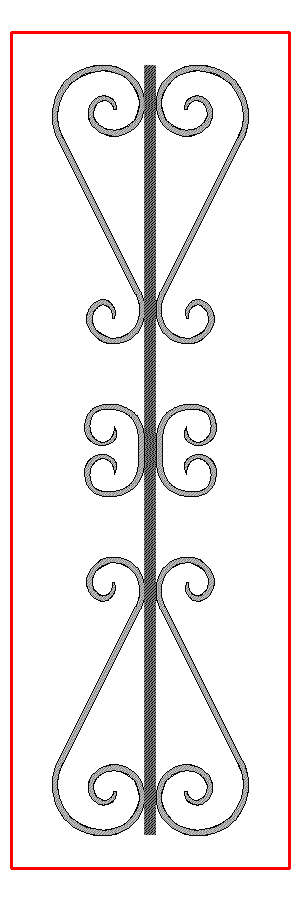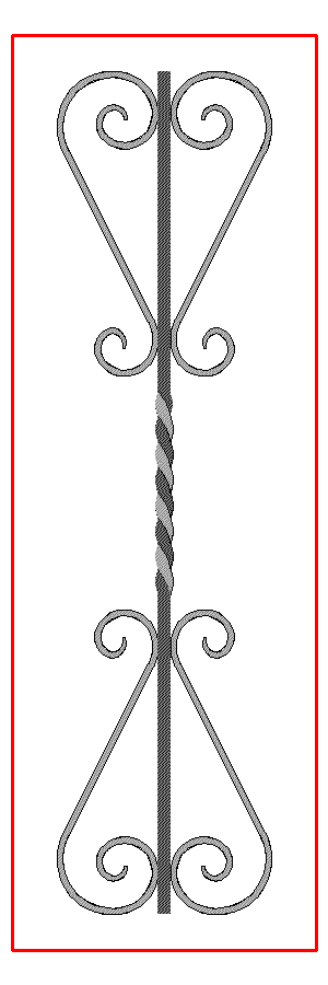 | The Twists part is usually around 300mm tall, but can be as small as 100mm, so possible to have two twists in a 400mm tall panel. | Circle is 100mm diameter, to get 2 circles in a bar the minimum height would need to be 450mm More detail on this can be found on the video here | Cages are 150mm tall, minimum height for 2 cages would be 450mm Video here | C scrolls are usually 100mm tall, so minimum height for two would be 400mm | Scroll need to be 250mm tall minimum or they look Squashed. so minimum height for two will be 500mm |